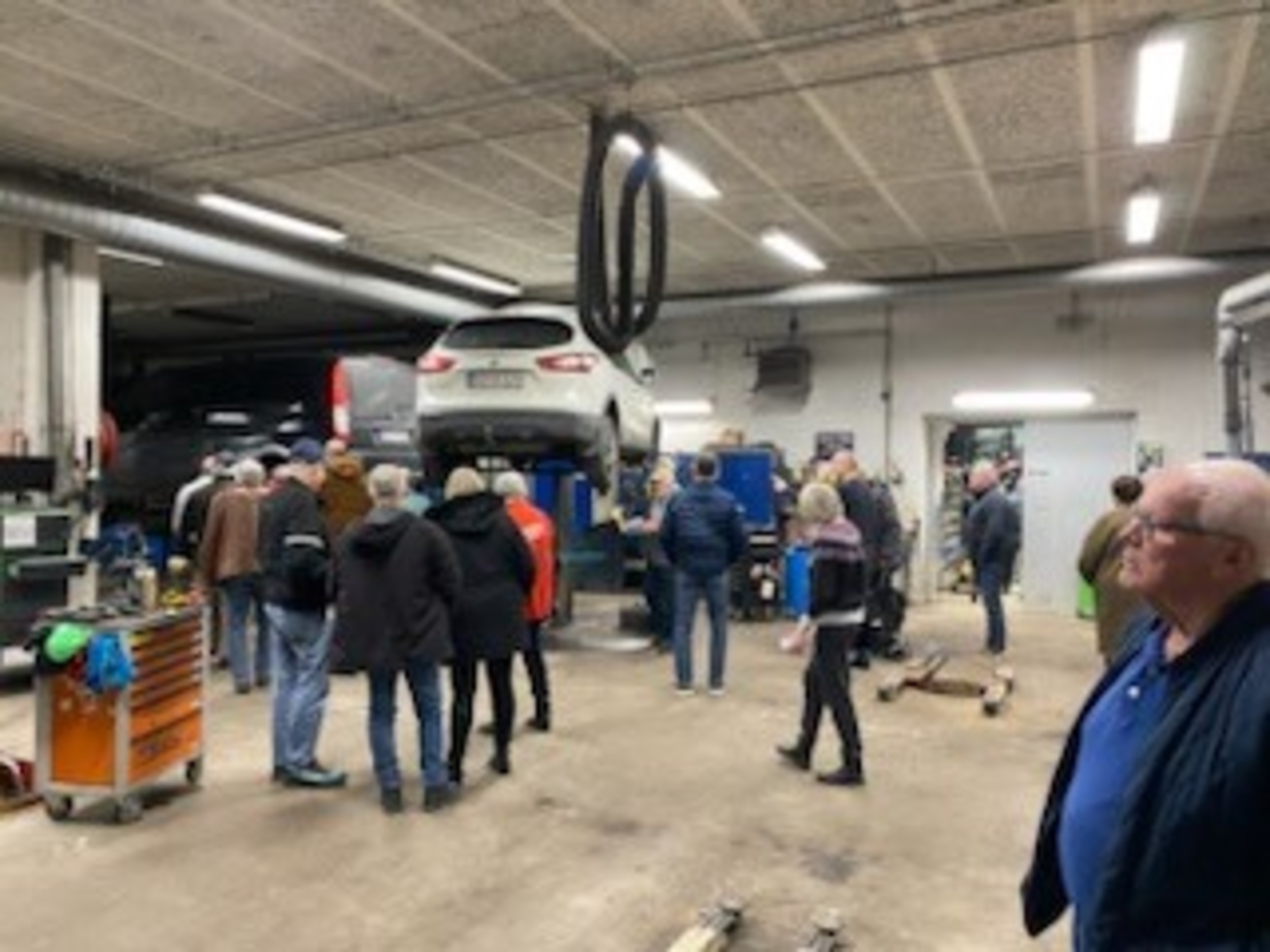 Derefter var der rundvisning på det store værksted, som både rummer et stort traktorværksted, personbils værksted, et stort lager og et område med Aplus syns sted.