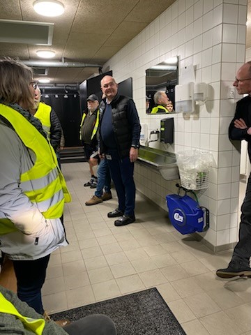 Vi fik set hele værkstedet , lager kontorområde, omklædningsrum og sluttede i personalets kantine hvor der blev budt på kaffe, the og hjemmebag.